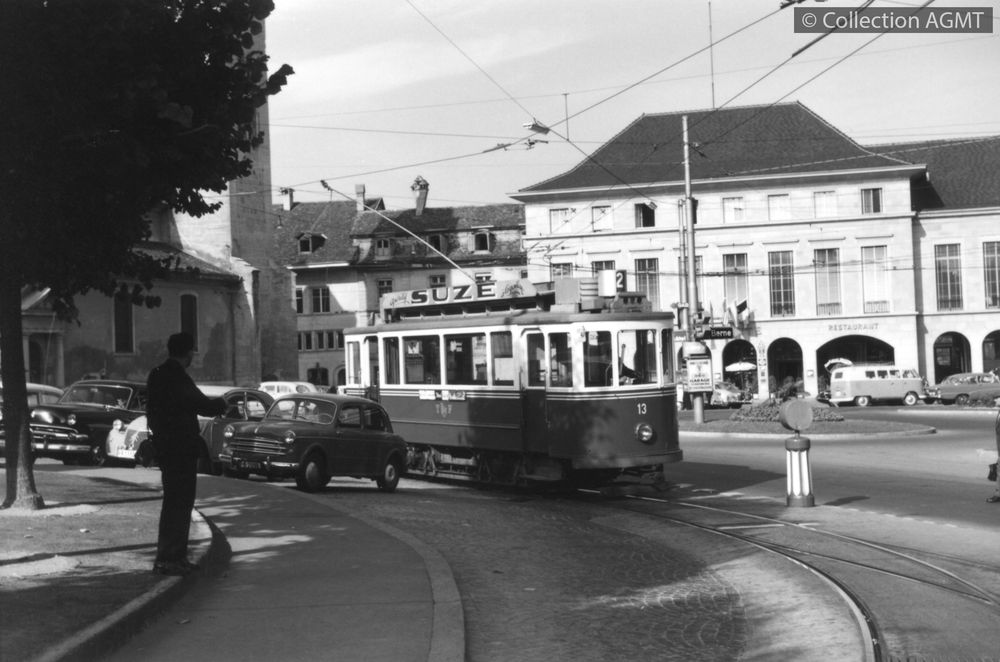 [Compagnie] TF (Fribourg)Index. décimale : 3141 Tramway et métro léger urbain - véhicule - service régulier, transport de voyageur L'automotrice 13 de la ligne 2 à destination des Charmettes traverse la place Notre-Dame [document graphique à deux dimensions] / Jacques Bazin, Photographe . - [S.l.] : [s.n.], [ca 1980] . - 1 photo : noir et blanc ; 11 x 15 cm.