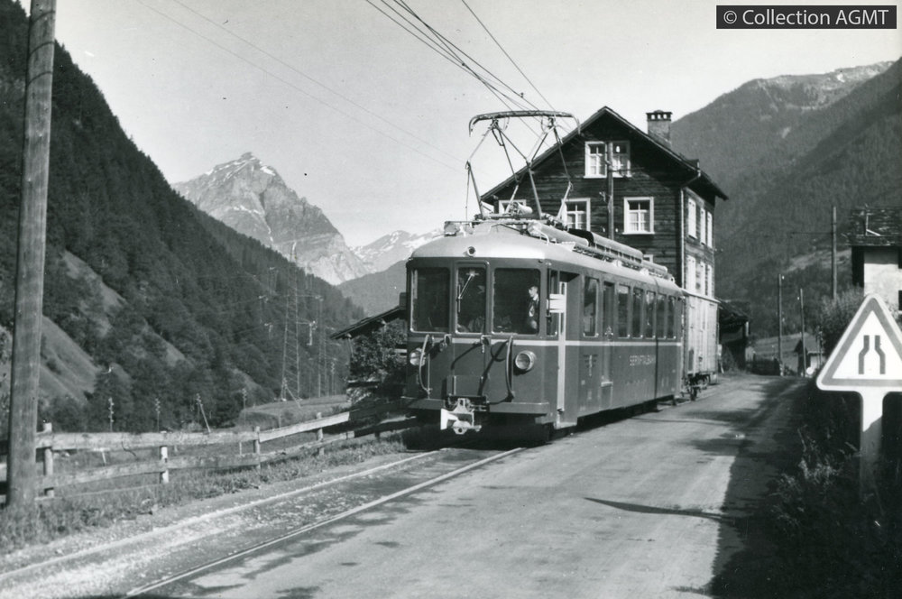 PermalinkUn convoi du SeTB mené par une automotrice série 5-7 quitte Engi à destination de Schwanden / François Chapuis