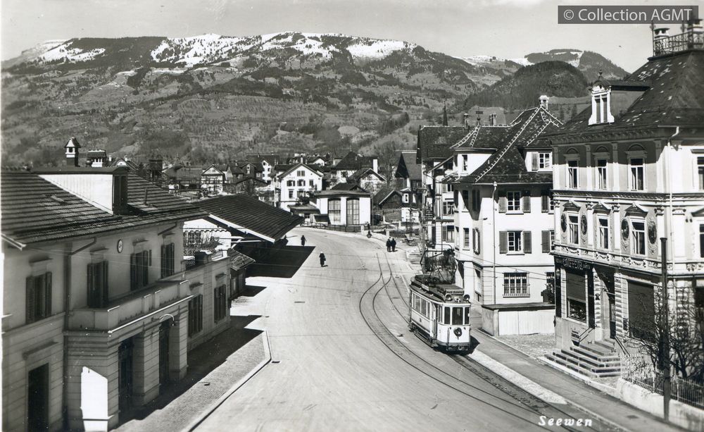 4141(494.11)_SStB_1962-02.jpgImage JpegDas 1914 an die Stelle der Drehstromwagen getretene Gleichstromtram in Seewen (Schwyz SBB) in den ersten Betriebsjahren