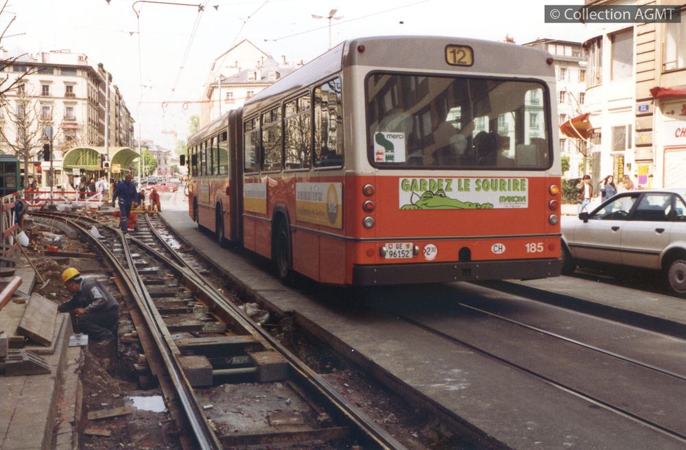 Titre : Genève, rond-point de Plainpalais : en service sur la ligne 12 en remplacement du tram, le bus Volvo 185 des TPG passe à la hauteur du chantier de voie, cause de l'interruption du trafic des trams Type de document : document graphique à deux dimensions Auteurs : Gaston Guignard, Photographe Editeur : [S.l.] : Kodalux Année de publication : 1994 Importance : 1 photo Présentation : couleur Format : 10 x 15 cm Langues : Français (fre) Catégories : [Mots-clefs] 161-185