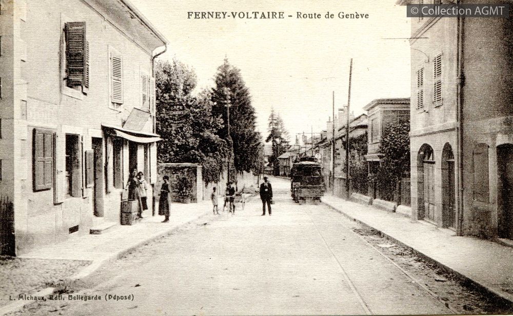 [Année] 1915Index. décimale : 4141 Tramway et métro léger interurbain et vicinal - véhicule - service régulier, transport de voyageur Ferney-Voltaire : route de Genève [document graphique à deux dimensions] . - Bellegarde : Lucien Michaux, éditeur, [ca 1915] . - 1 carte postale : noir et blanc ; 9 x 14 cm.