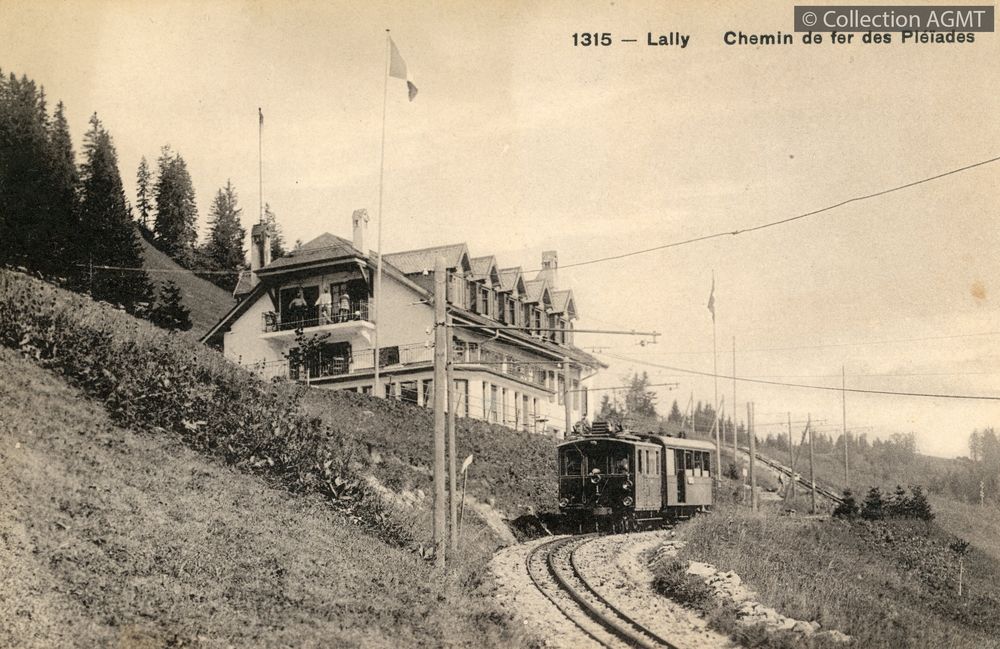 Titre : Lally : Chemin de fer des Pléïades Type de document : document graphique à deux dimensions Editeur : Neuchâtel : Phototypie Année de publication : [ca 1911] Importance : 1 carte postale Présentation : noir et blanc Format : 9 x 14 cm Langues : Français (fre) Catégories : [Mots-clefs] 1-3