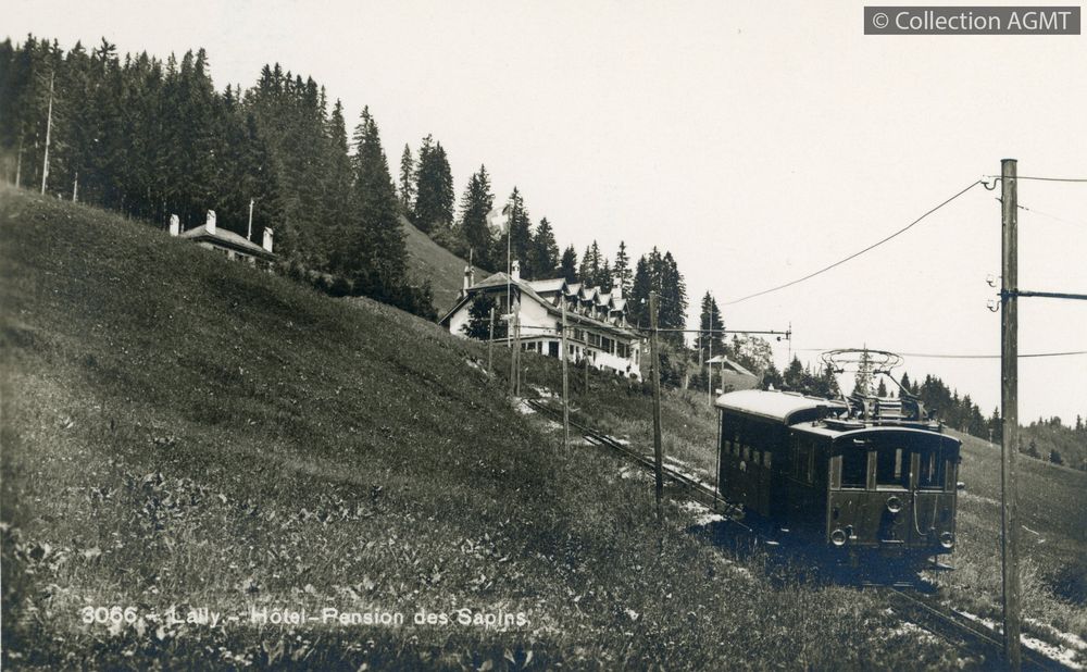 [Année] 1920Index. décimale : 4341 Chemin de fer interurbain et vicinal - véhicule - service régulier, transport de voyageur Hôtel-Pension des Sapins : Lally sur Blonay, Pléïades [document graphique à deux dimensions] . - Neuchâtel : Société graphique, [ca 1920] . - 1 carte postale : colorisée ; 9 x 14 cm. - (Société graphique; 282) .