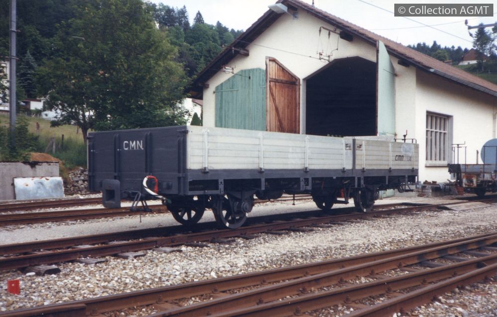 Code-barres Cote Support Localisation Section Disponibilité 6700035127 4344(494.43) CMN 1980/01 Photographie Bachet Photographies Disponible Vue de 3/4 du wagon à bords bas L 45 des CMN stationné à côté de la remise des Brenets / Gaston Guignard
