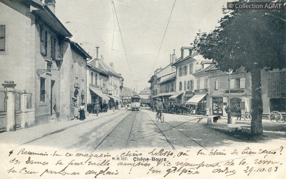 [Année] 1902Index. décimale : 3141 Tramway et métro léger urbain - véhicule - service régulier, transport de voyageur Chêne-Bourg [document graphique à deux dimensions] . - Genève : Mégevand & Martin, [ca 1902] . - 1 carte postale : noir et blanc ; 9 x 14 cm. - (MM; 107) .