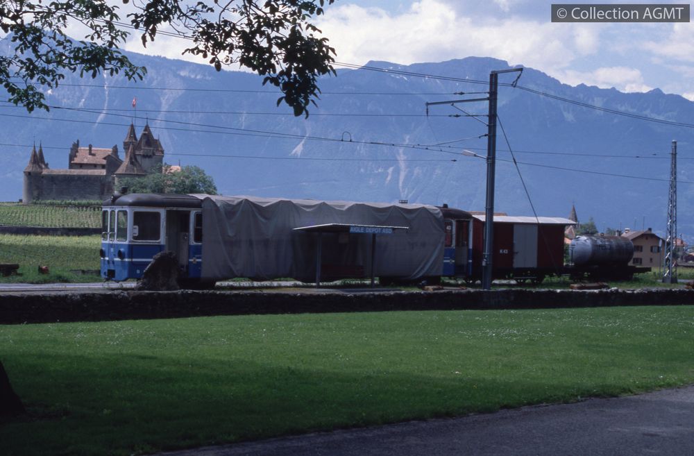Affiner la recherche Interroger des sources externesUn convoi de l'ASD en provenance des Diablerets, formé d'une automotrice BDe 4/4 et de la voiture-pilote Bt4 434 passe à la hauteur du dépôt d'Aigle / Jeremy Wiseman