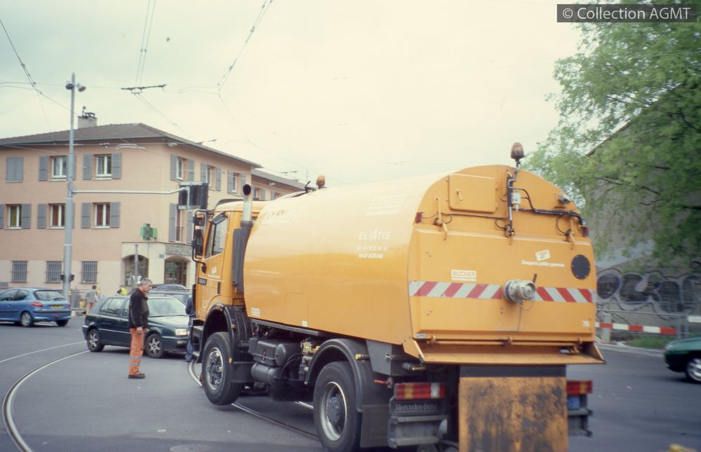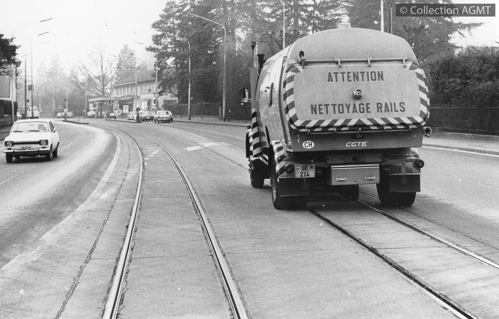 Affiner la recherche Interroger des sources externesLe camion éboueur des TPG nettoye les voies au Grand-Lancy, avant les premiers essais / François Chapuis