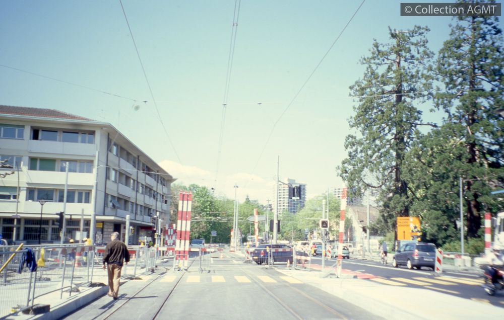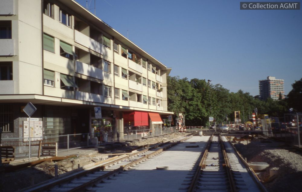 3148(494.42)_AGMT_2006-07_d.jpgImage JpegAu Grand-Lancy, la nouvelle double voie de tram qui traverse la place du 1er Août est partiellement revêtue / François Chapuis