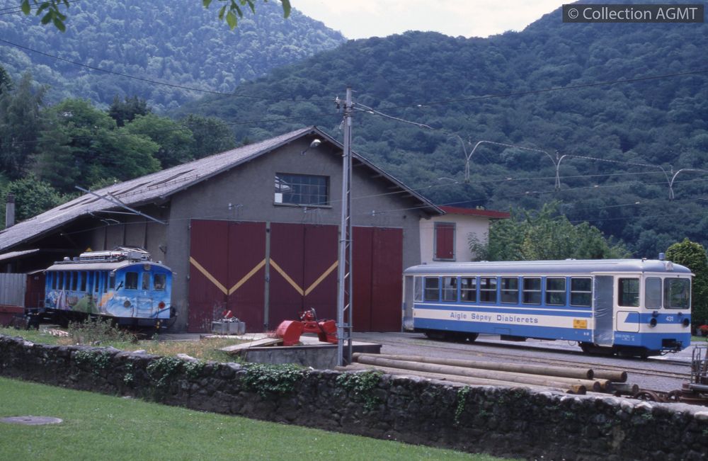 Affiner la recherche Interroger des sources externesL'automotrice BDe 4/4 402 de l'ASD stationne au dépôt d'Aigle en compagnie de la voiture-pilote Bt4 21, ex BTB, en cours de transformation / Jeremy Wiseman