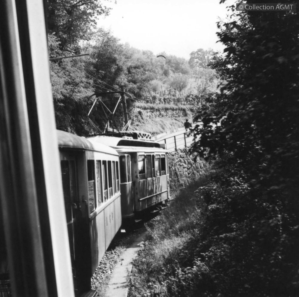 Entre Dino et Lugano, vue depuis l'automotrice Be 4/4 9 du LCD de la BDe 2/3 4 et de la voiture B4 41 |