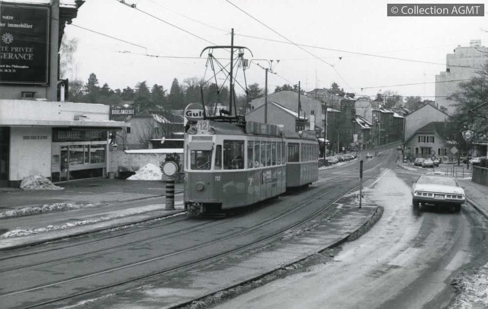 [Année] 1981Index. décimale : 3141 Tramway et métro léger urbain - véhicule - service régulier, transport de voyageur Chêne-Bourg, rue de Genève : en service sur la ligne 12 à destination de Moillesulaz, un convoi TPG de la ligne 12 mené par l'automotrice 722 attend le croisement à l'entrée de la voie unique du goulet de Chêne-Bourg [document graphique à deux dimensions] / Jeremy Wiseman (1933-2022), Photographe . - [S.l.] : [s.n.], [ca 1981] . - 1 photographie : noir et blanc ; 10 x 18 cm.