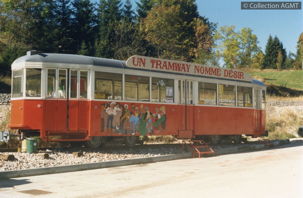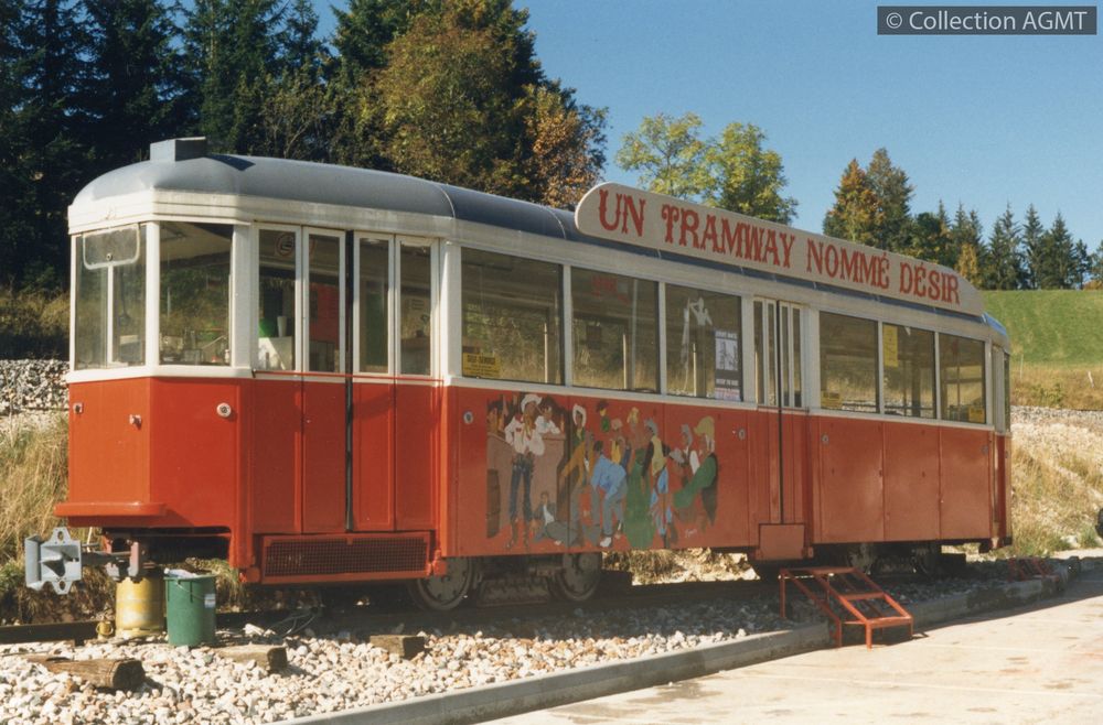 PermalinkPermalinkPermalinkLa remorque 327, ex-TPG, ancienne automotrice lucernoise, a été reconvertie en bar à l'enseigne "Un tramway nommé désir" dans le parking d'un centre commercial de Morbier / Martin Schweizer