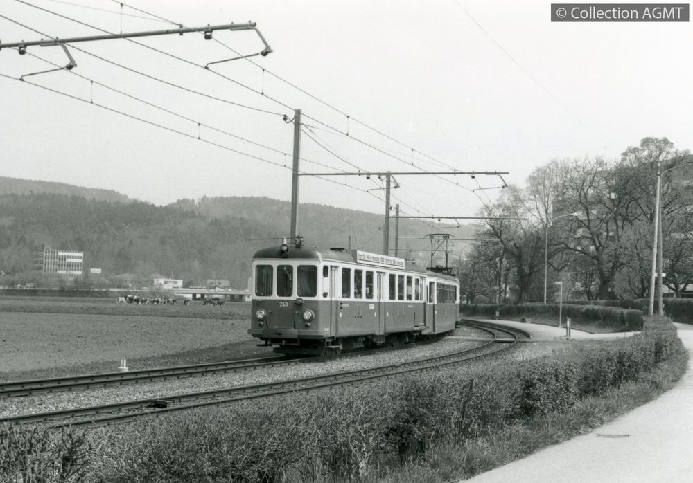 Titre : Regionalverkehr Bern-Solothurn : BDe 4/4 35, B 333 und BDt 243 am 7. November 1987 zwischen Muri Krone und Muri Type de document : document graphique à deux dimensions Auteurs : Juerg Aeschlimann, Photographe Editeur : Leissigen : Prellbock Année de publication : [ca 1998] Collection : Prellbock num. 3001.08 Importance : 1 photographie Présentation : couleur Format : 11 x 15 cm Langues : Allemand (ger) Catégories : [Mots-clefs] 35