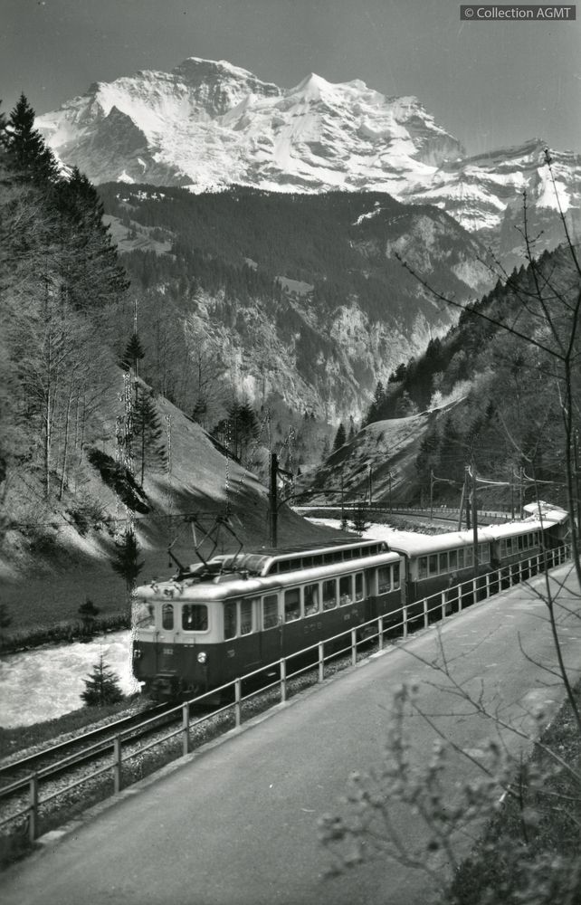 PermalinkPermalinkUn convoi du BOB mené par l'automotrice ABFeh 4/4 302 attend l'heure du départ de Grindelwald / Jacques Bazin