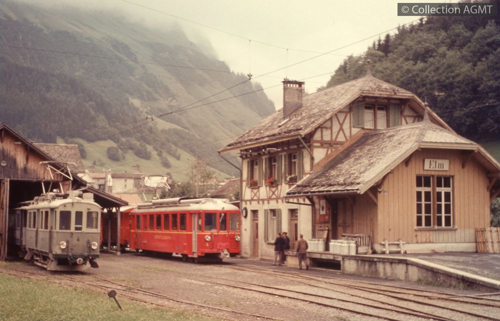 4141(494.25)_SeTB_1966-10.jpgImage JpegL'automotrice BFe 4/4 6 du SeTB stationne à côté du bâtiment voyageur de la gare d'Elm / Jacques Bazin