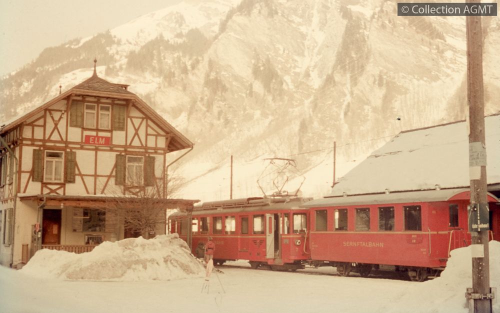 PermalinkUn convoi du SeTB, mené par l'automotrice BDe 4/4 7, attend l'heure du départ en gare d'Elm / Eric Rahm