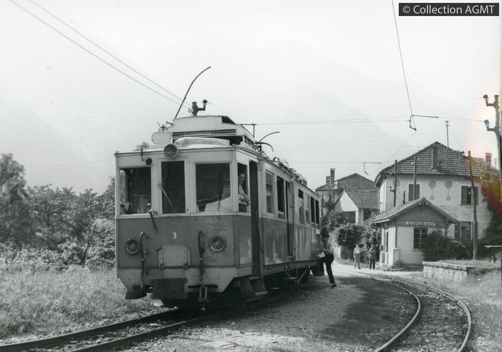 [Compagnie] FARTIndex. décimale : 4341 Chemin de fer interurbain et vicinal - véhicule - service régulier, transport de voyageur Croisement à Gordevio [document graphique à deux dimensions] / Michel Grandguillaume, Photographe . - Lausanne : BVA, [ca 1976] . - 1 carte postale : noir et blanc ; 11 x 15 cm. - (BVA; 23.05 LPB) .