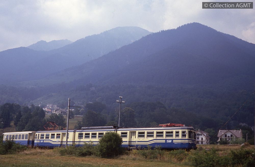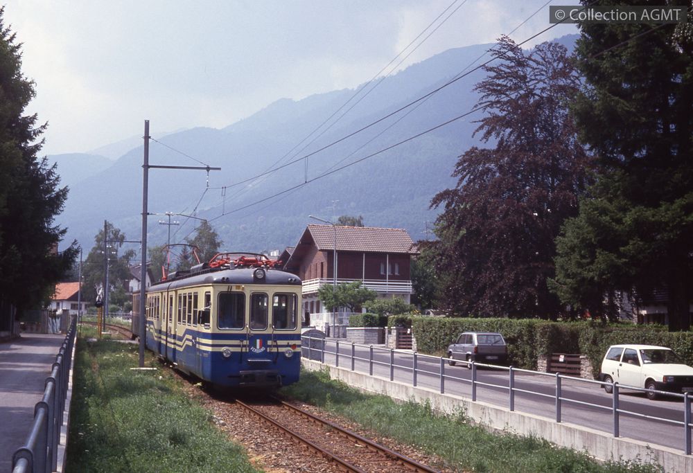 4341(450.21)_SSiF_1991-08_d.jpgImage JpegVue de 3/4 arrière droit d'un convoi SSIF formé d'une automotrice ABe 8/8 et d'une voiture qui circule à proximité de Santa Maria Maggiore / Jeremy Wiseman