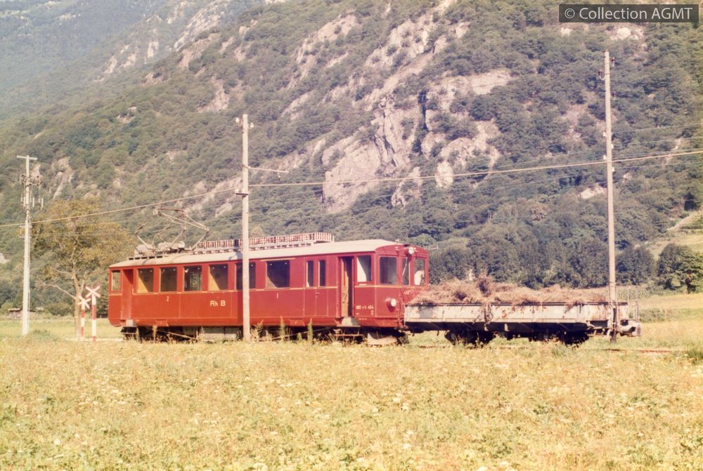 PermalinkTractant un wagon chargé d'herbe, l'automotrice ABDe 4/4 454 des RhB circule à proximité de San Vittore / Eric Rahm