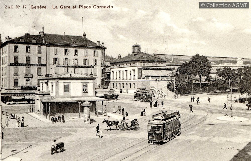 [Année] 1911Index. décimale : 3141 Tramway et métro léger urbain - véhicule - service régulier, transport de voyageur Genève : la gare et place Cornavin [document graphique à deux dimensions] . - Genève : Z.A. Goldberg, [ca 1911] . - 1 carte postale : colorisée ; 9 x 14 cm.
