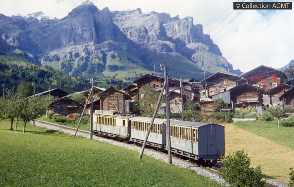 Un convoi du LLB formé d'une automotrice et de deux voitures qui monte à Loèche-les-Bains, vient de quitter la gare d'Inden [document graphique à deux dimensions] . - Montpreveyres : Photolabo club, 1989 . - 1 photographie : couleur ; 9 x 13 cm. Langues : Français ( fre) |  |