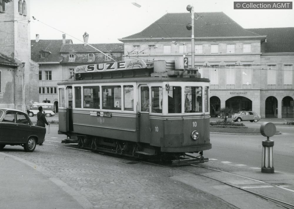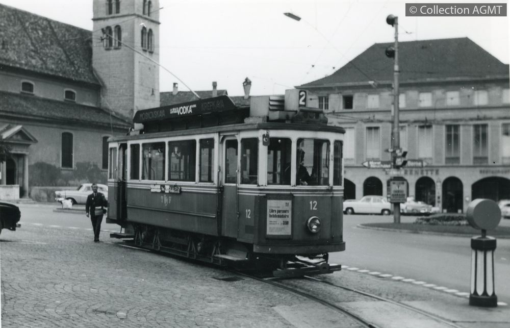 [Compagnie] TF (Fribourg)Index. décimale : 3141 Tramway et métro léger urbain - véhicule - service régulier, transport de voyageur L'automotrice 13 de la ligne 2 à destination des Charmettes traverse la place Notre-Dame [document graphique à deux dimensions] / Jacques Bazin, Photographe . - [S.l.] : [s.n.], [ca 1980] . - 1 photo : noir et blanc ; 11 x 15 cm.