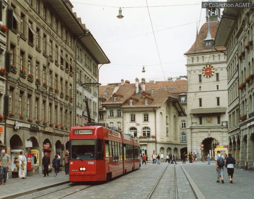 PermalinkEn service sur la ligne 3 à destination de Weissenbuehl, l'automotrice 733 des SVB circule à la Spitalgasse / Jeremy Wiseman