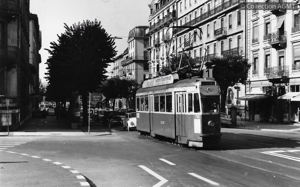 3141(494.42)_cGTe_1968-07_d.jpgImage JpegEn service sur la ligne 1B, l'automotrice CGTE Ce 4/4 735, ex VBL, arrive à la place des Philosophes / Jeremy Wiseman