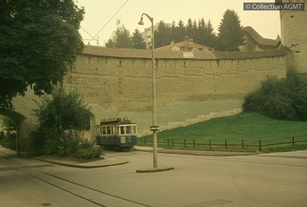 3141(494.41)_TF_1963-22_d.jpgImage JpegEn service sur la ligne 2 à destination de Pérolles, l'automotrice 13 des TF vient de passer sous la porte de Morat / Jeremy Wiseman