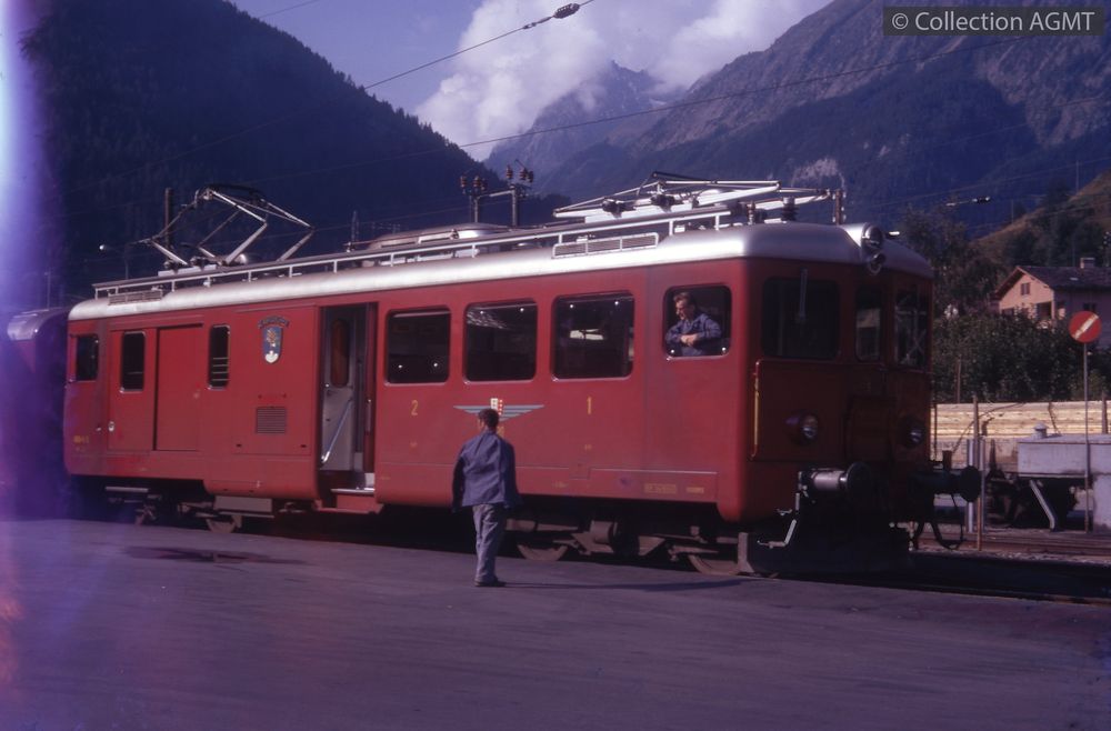 PermalinkL'automotrice ABDe 4/4 5 du MO, en tête d'un convoi pour Martigny, attend l'heure du départ en gare d'Orsières / Nicholas Edward Wiseman