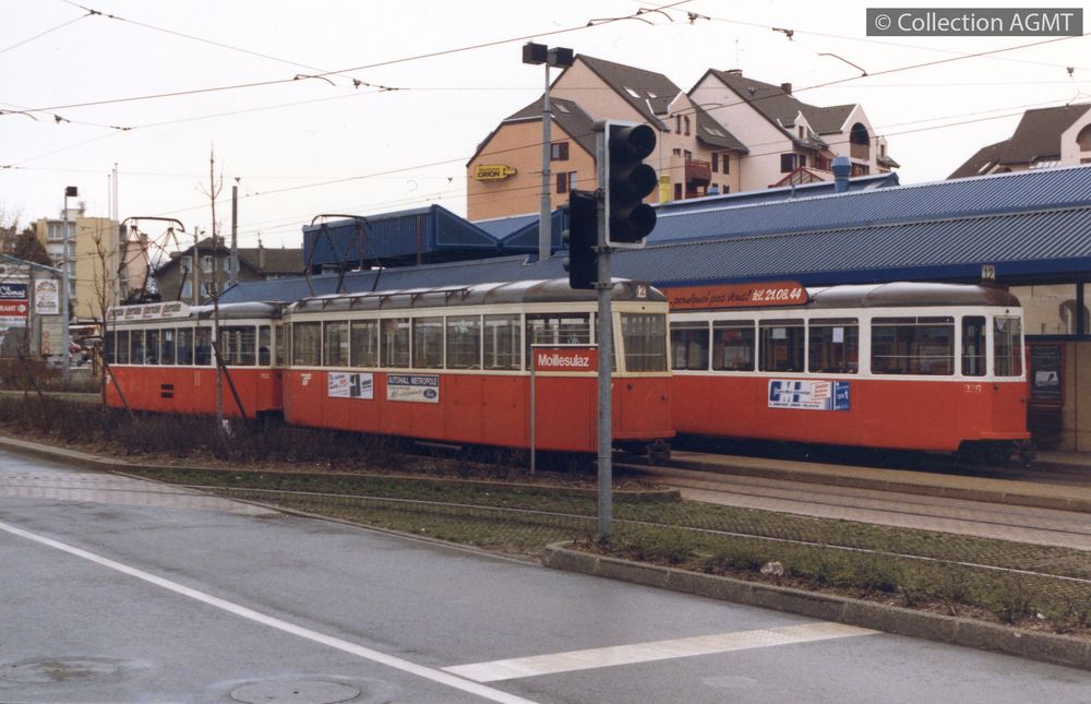 Affiner la recherche Interroger des sources externesCirculant sur la ligne 12 à destination de Moillesulaz, un convoi TPG formé de l'automotrice Ce 4/4 718 et de la remorque C4 326 marque l'arrêt à la place de Neuve où stationne le convoi historique de l'AGMT / Gaston Guignard