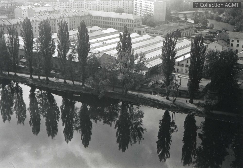 Vue plongeante sur le dépôt de la CGTE à la Jonction : l'ancien bâtiment de la brasserie Fluhr est encore en place [document graphique à deux dimensions] / Compagnie genevoise des tramways électriques, Photographe . - [S.l.] : [s.n.], [2001] . - 1 photo : noir et blanc ; 11 x 15 cm + 1 négatif (6 x 9 cm.) pour tirage noir et blanc. Langues : Français ( fre) |  |