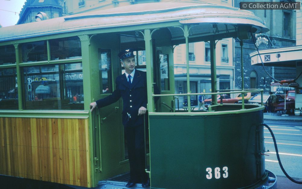 [Année] 1980Index. décimale : 3950 Compagnie de transport urbain (en tant qu'entité administrative) - relations avec les employés, le personnel - généralités René Hirt, plateformiste de la remorque 363 de l'AGMT, pose pour les photographes à la place du Cirque [document projeté ou vidéo] / François Chapuis, Photographe . - [S.l.] : Kodak, 1980 . - 1 diapositive : couleur ; 5 x 5 cm.