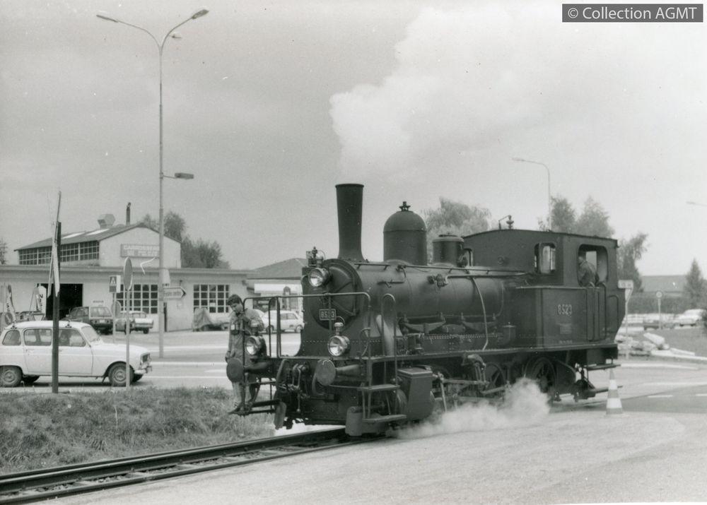 [Compagnie] CTVJIndex. décimale : 4348 Chemin de fer interurbain et vicinal - véhicule - préservé, en service historique La locomotive à vapeur E 3/3 "Tigerli" 8523 du CTVJ manoeuvre au terminus d'Eysins [document graphique à deux dimensions] / Jeremy Wiseman (1933-2022), Photographe . - [S.l.] : [s.n.], [ca 1989] . - 1 photographie : noir et blanc ; 11 x 15 cm.