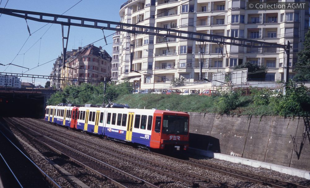 [Compagnie] CFF (Suisse)Index. décimale : 4340 Chemin de fer interurbain et vicinal - véhicule - généralités, histoire, caractéristiques techniques (pour une série particulière, sinon, voir classe 493*(si lié à une compagnie) ou 61** Résumé : En mai 1992, les CFF ont commandé aux ACMV cinq rames articulées Bem 4/6 presque identiques au matériel du TSOL afin de remplacer les vieilles compositions BDe 4/4 - ABt datant des années cinquantes en service sur la ligne Genève - La Plaine. Pour les ACMV, il s'agit d'une première pénétration du marché voyageurs des CFF. Les quais de la ligne ayant des hauteurs variables, les véhicules devront disposer d'emmarchements à marches fixes, ce qui nécessitera une modification du châssis par rapport au matériel TSOL. De même, la tension de 1'500 V au lieu de 750 V nécessite une modification de la partie électrique. La vitesse maximale passera de 80 à 100 km/h et les bogies doivent être équipés d'une brosse pour recevoir les informations du système "crocodile" de la SNCF. PermalinkUne double traction d'automotrices Bem 550 des CFF à destination de Bellegarde arrive en gare de Collonges-Fort l'Ecluse / Jeremy Wiseman