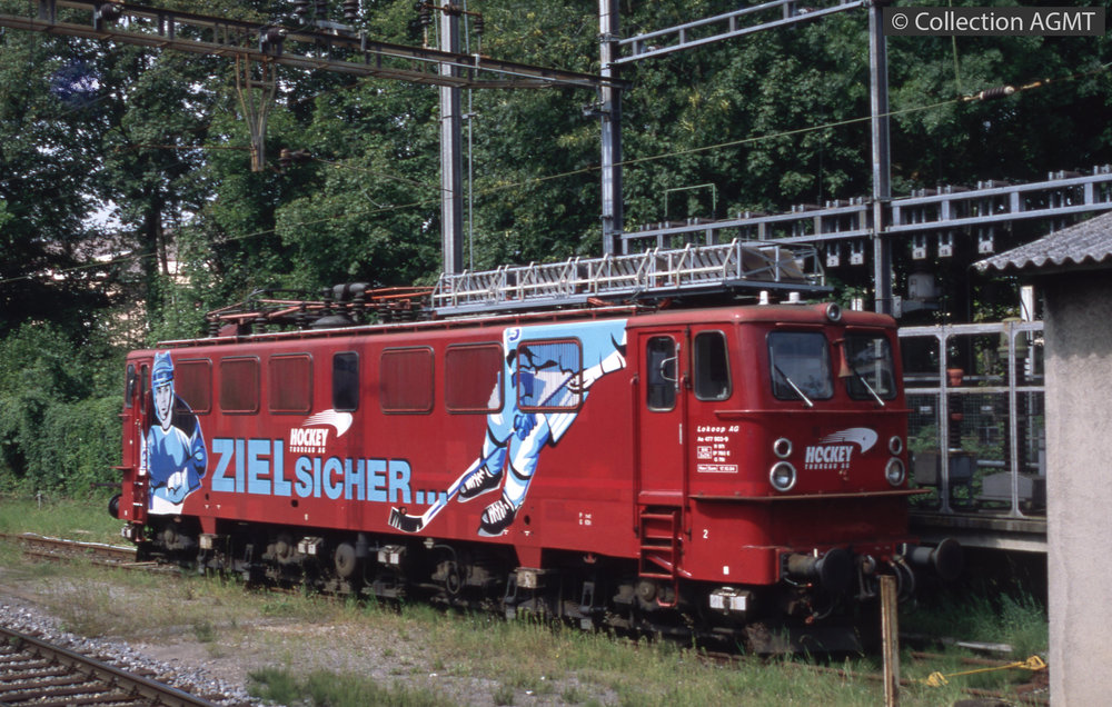 [Compagnie] WAB (Allemagne)Index. décimale : 4931 Compagnie de transport interurbain et vicinal (en tant qu'entité administrative) - parc de véhicules - ferroviaire Résumé : La faillite du MThB a mis au chômage les 18 locomotives 477.900-917 exploitées par la société Lokoop. Ces engins ex DR ont été revendus à deux opérateurs allemands. Les CFF ont repris la Re 4/4 II 21 du MThB, réimmatriculée 11172 en remplacement de celle détruite par accident en 1978. La locomotive Ae 477 903-9, ex DR, rachetée par Lokoop, est stationnée sur une voie de garage à Kreuzlingen / Jeremy Wiseman
