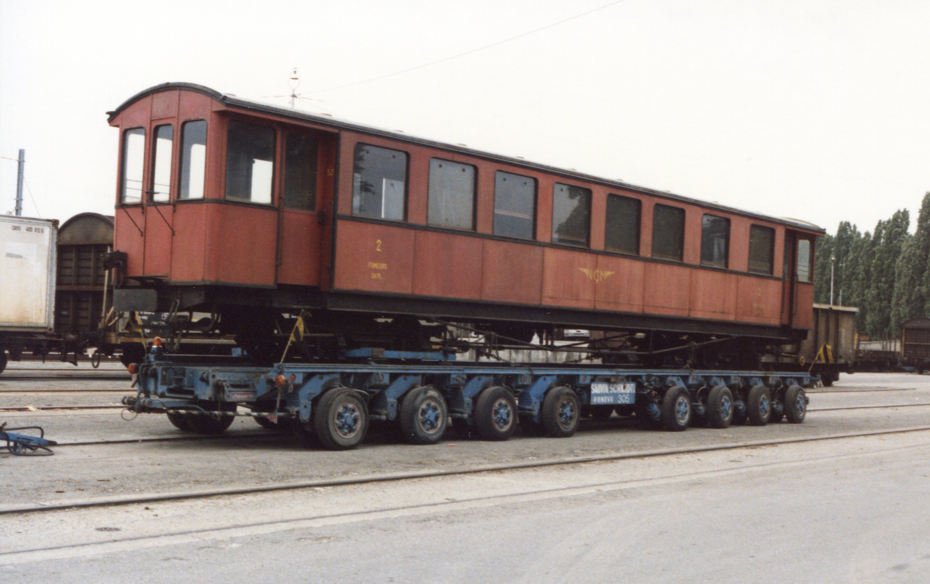 [Année] 1969Index. décimale : 3146 Tramway et métro léger urbain - véhicule - construction, vue d’usine (voir aussi la classe 6), livraison, révision, réparation, restauration, entretien Chargée sur une remorque routière, l'automotrice Ce 4/4 732 de la CGTE attend à la gare de La Praille son transfert sur un wagon qui l'emmènera chez Hess pour transformation en remorque [document graphique à deux dimensions] / Eric Rahm, Photographe . - Genève : Association genevoise du musée des tramways. Service photos, [ca 1980] . - 1 photo : noir et blanc ; 9 x 13 cm.