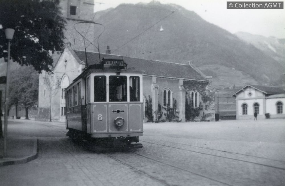[Compagnie] VMCVIndex. décimale : 4141 Tramway et métro léger interurbain et vicinal - véhicule - service régulier, transport de voyageur L'automotrice 8 du VMCV en provenance de Vevey arrive à Villeneuve, terminus de la ligne [document graphique à deux dimensions] / Jeremy Wiseman (1933-2022), Photographe . - [S.l.] : Fujifilm, [ca 1980] . - 1 photographie : noir et blanc ; 10 x 15 cm.