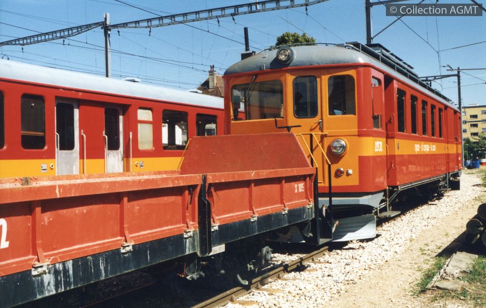 Titre : Nyon, dépôt des Plantaz : l'automotrice BDe 4/4 221 du NStCM (acquise auprès du LEB) est attelée au wagon à bords bas X 105 Type de document : document graphique à deux dimensions Auteurs : Gaston Guignard, Photographe Editeur : [S.l.] : Kodalux Année de publication : 1995 Importance : 1 photo Présentation : couleur Format : 10 x 15 cm Langues : Français (fre) Catégories : [Mots-clefs] 104-106