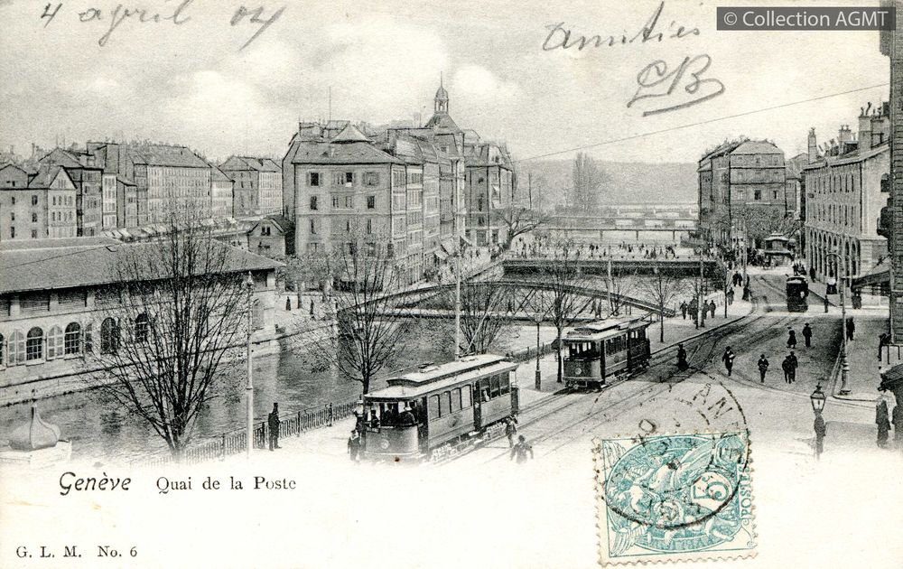 [Année] 1902Index. décimale : 3141 Tramway et métro léger urbain - véhicule - service régulier, transport de voyageur Genève : Corraterie & [et] place Bel-Air [document graphique à deux dimensions] . - Montreux : Gaspard Lips, [ca 1902] . - 1 carte postale : noir et blanc ; 9 x 14 cm. - (GLM; 14) .