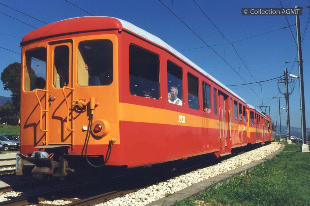 4341(494.45)_NStCM_1991-01.jpgImage JpegEn gare d'Arzier, une rame réversible du NStCM croise une ancienne automotrice ABDe 4/4 / Gaston Guignard