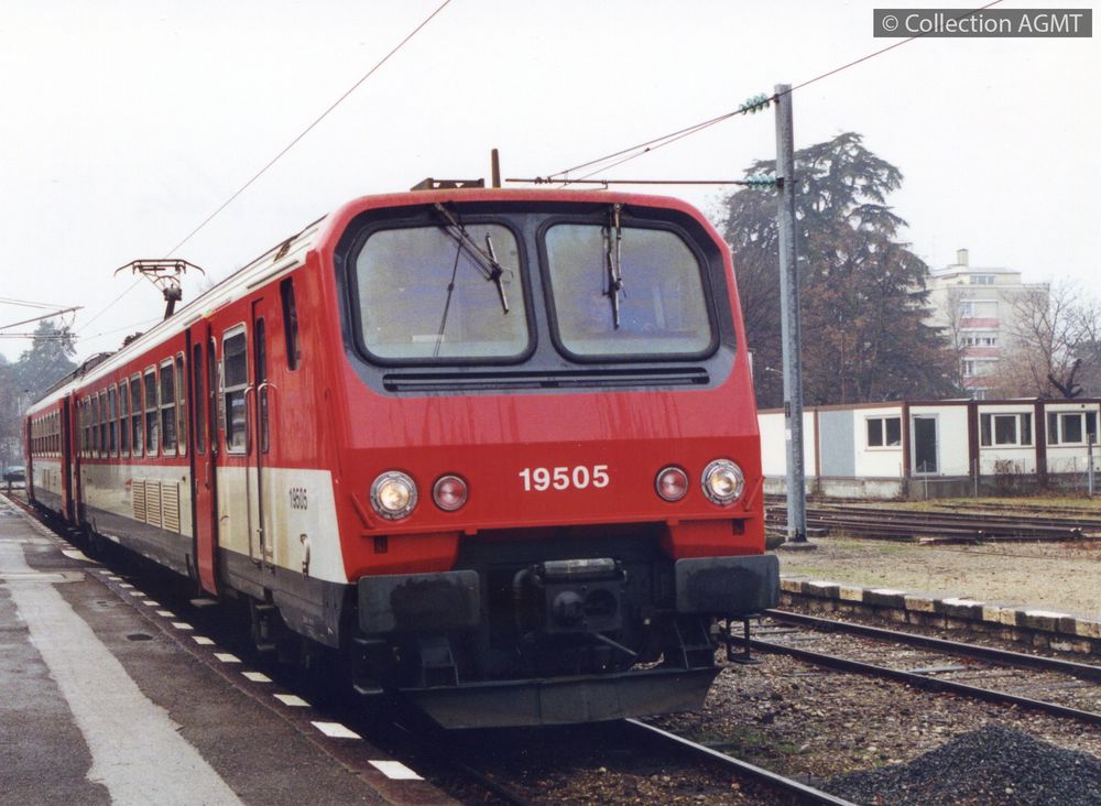 PermalinkVue de 3/4 avant droite de l'automotrice Z2 19505 de la SNCF qui attend l'heure du départ pour Annemasse en gare de Genève-Eaux-Vives / Gaston Guignard