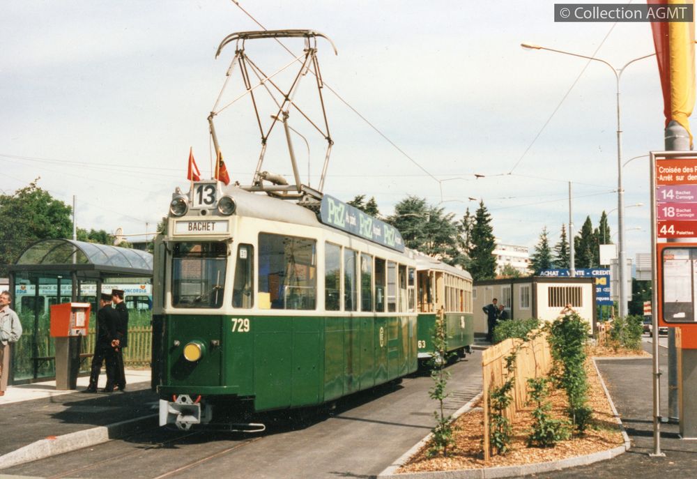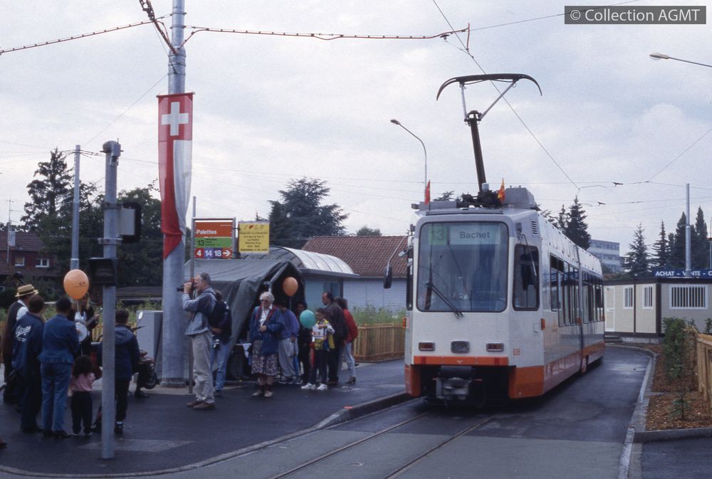 PermalinkAssurant des navettes entre les Palettes et le Bachet lors des festivités d'inauguration du prolongement de la ligne 13, l'automotrice 836 des TPG stationne aux Palettes / Richard J.S. Wiseman