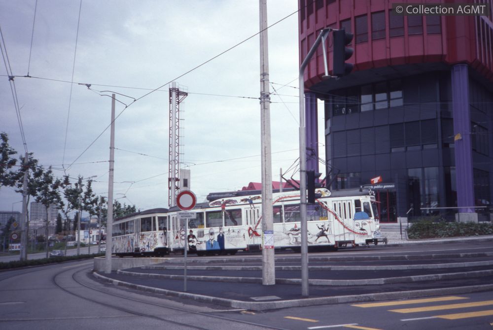 PermalinkVenant du dépôt de la Jonction, un convoi TPG formé des automotrices 810 et 812 qui assure une course spéciale à destination du dépôt du Bachet passe à la place du Cirque / Martin Schweizer