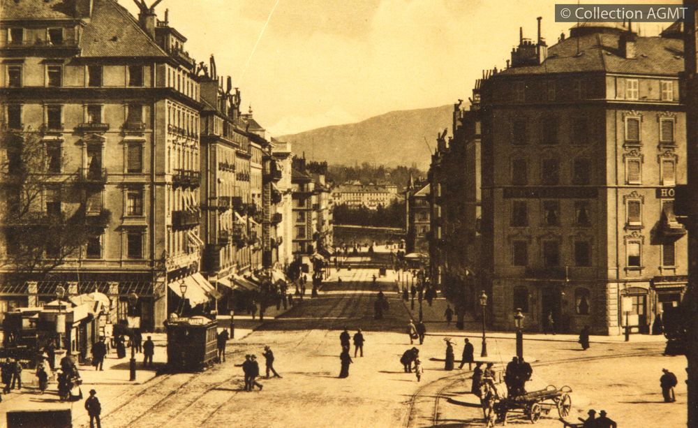 [Année] 1896Index. décimale : 3141 Tramway et métro léger urbain - véhicule - service régulier, transport de voyageur Genève : la place Bel-Air et la Corraterie en 1896 [document graphique à deux dimensions] / Frédéric Charnaux, Photographe . - [1996] . - 1 photo : noir et blanc ; 13 x 19 cm.