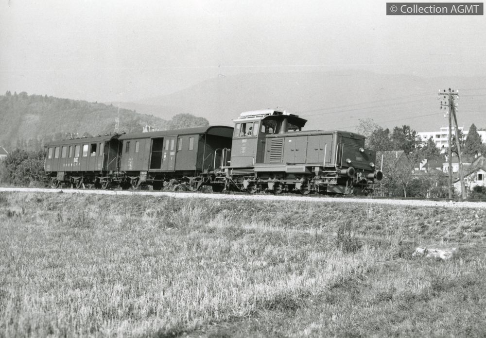 [Compagnie] CFF (Suisse)Résumé : Les CFF ont commandé à Vossloh 59 locomotives diesel qui formeront la série Am 843. Elles seront réparties entre toutes les activités et remplaceront les Em 3/3 18801-18841, Bm 6/6 18501-18514 et Bm 4/4 18401-18446, aux coûts d'entretien trop élevés. Un convoi CFF pour Nyon, formé du locotracteur Em 3/3 18825, d'un fourgon et d'une voiture à trois essieux vient de quitter la gare de Divonne / Jeremy Wiseman