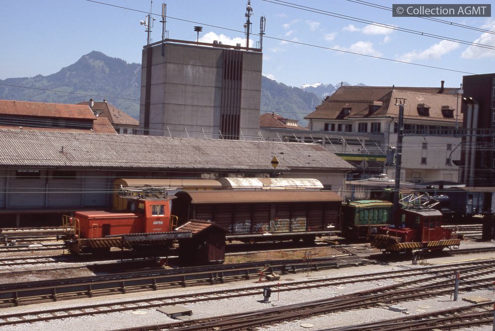[Compagnie] TPFIndex. décimale : 4345 Chemin de fer interurbain et vicinal - véhicule - service marchandises, postal, des manœuvres Deux locomotives électriques de manoeuvre des TPF se trouvent vers la fosse aux trucks porteurs de la gare de Bulle [document projeté ou vidéo] / Jeremy Wiseman (1933-2022), Photographe . - [S.l.] : [s.n.], 2004 . - 1 diapositive : couleur ; 5 x 5 cm.