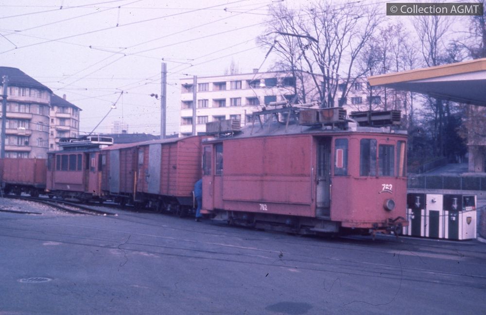 PermalinkEn gare de Sébeillon, l'automotrice 762 du LEB, ex-TL, manoeuvre deux wagons couverts / Werner Heubi