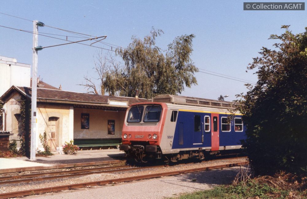 PermalinkCirculant en direction d'Annemasse, l'automotrice Z2 9501 de la SNCF marque l’arrêt en gare de Chêne-Bourg / Gaston Guignard