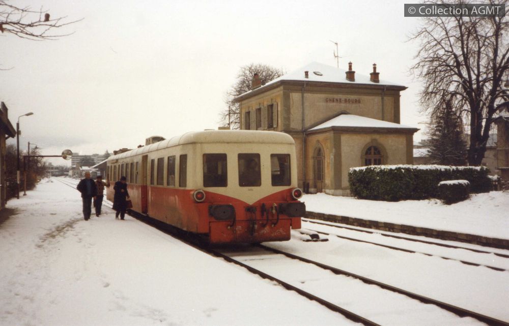 4341(494.42)_SNCF_1981-06.jpgImage JpegUn autorail X 2100 de la SNCF à destination de Genève-Eaux-Vives marque l'arrêt en gare de Chêne-Bourg / Gaston Guignard